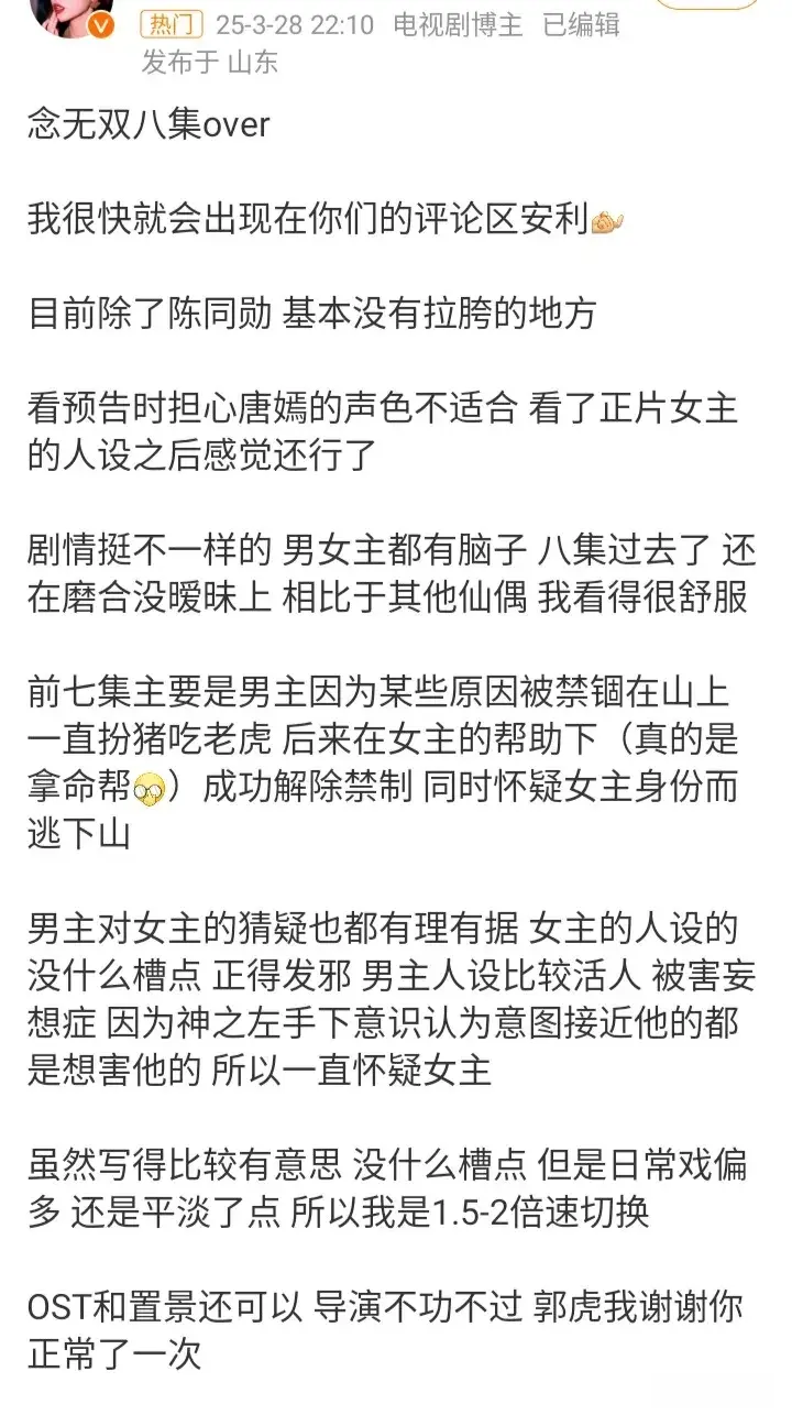 再次感嘆,《念無雙》很難讓東說念主服氣是2025年的劇。
